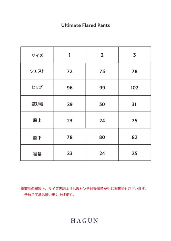 フレアシルエットにもこだわり、膝頭から裾にかけてフレア感を出すのではなく、フレア始まりを10cm下げることにより、足長効果やよりスマートに見えるシルエットに仕上げています。